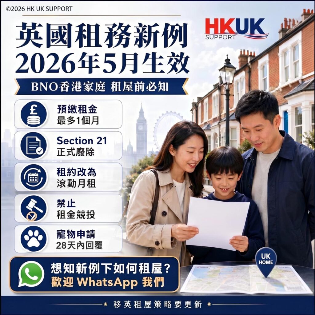 如果你有任何關於英國租屋的問題,或想了解我們如何協助香港家庭在新法例下順利租到合適的物業,歡迎WhatsApp我們。